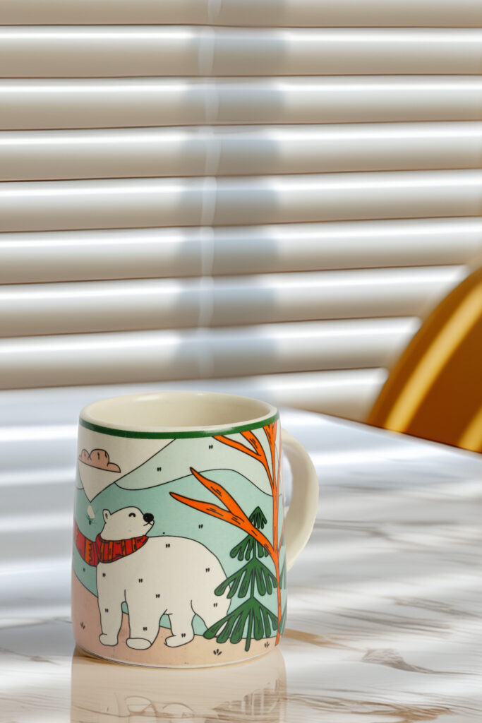 Bring the crisp joy of winter mornings to your drinkware collection with the Arctic Stroll Mug. Adorned with vibrant forest illustrations and a cozy polar bear donning a scarf, this mug tells a story of snow-covered serenity. The contrasting deep greens, bold orange trees, and soft pastel blues make it an artful piece perfect for hot cocoa, seasonal lattes, or simply to warm your hands on a chilly day. Durable and whimsical, it’s a delightful nod to winter wonderlands.