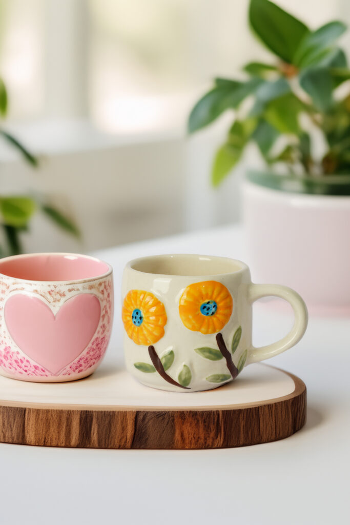 Start your day with a burst of sunshine. The Sunny Bloom Mug is a hand-glazed ceramic cup featuring raised yellow-orange floral motifs with contrasting blue centers, delicate green leaves, and dark brown stems. Its playful 3D design and sturdy shape make it both functional and artistic — ideal for sipping coffee, tea, or cocoa with a touch of nature-inspired joy. Microwave- and dishwasher-safe.